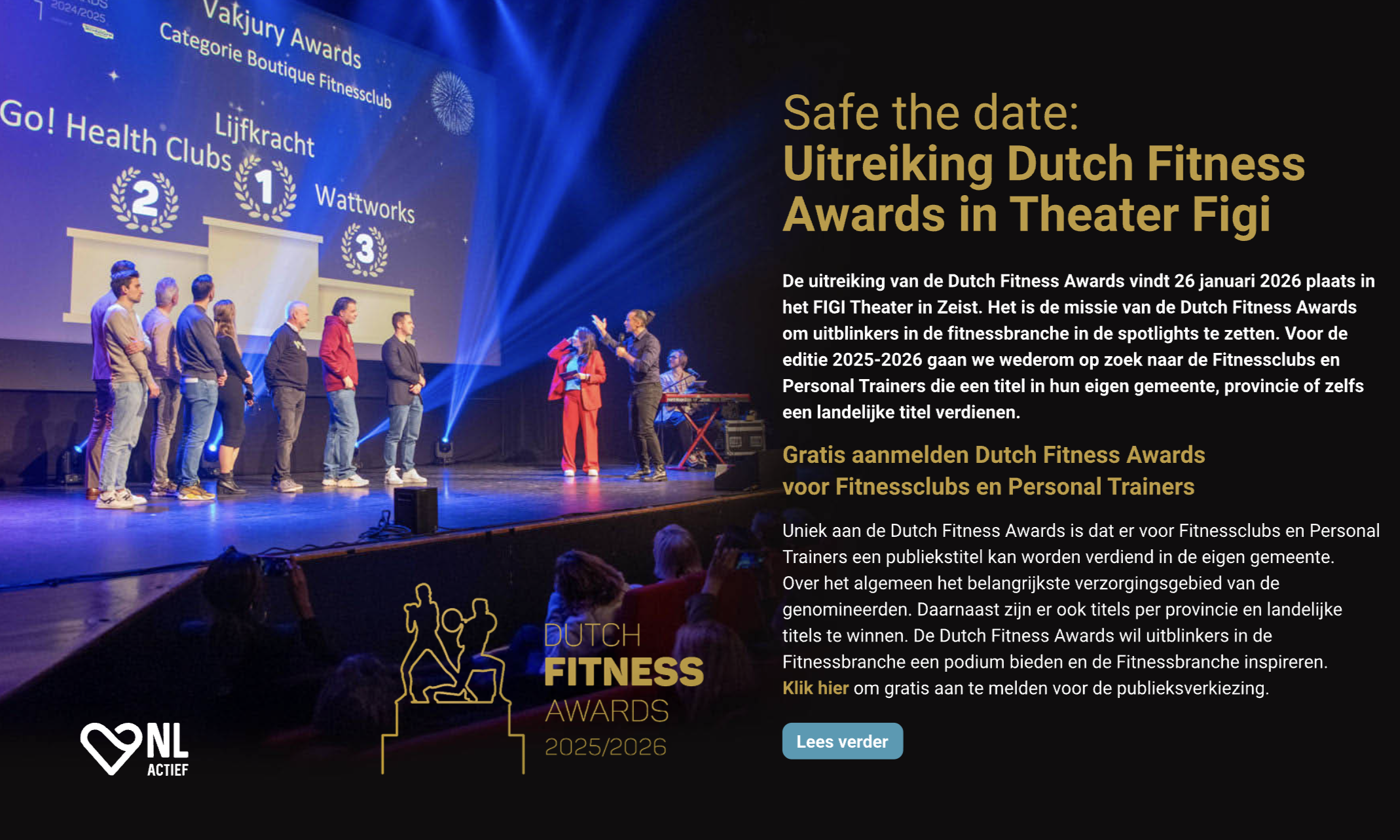 Mis niks uit de branche en ontvang gratis het NL Actief Ezine in je mailbox. De nominatiefase voor de Publieksverkiezing van de Dutch Fitness Awards loopt tot en met woensdag 5 november 2025. Stemmen voor de Publieksverkiezing kan tot en met zondag 16 november aanstaande!